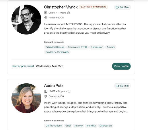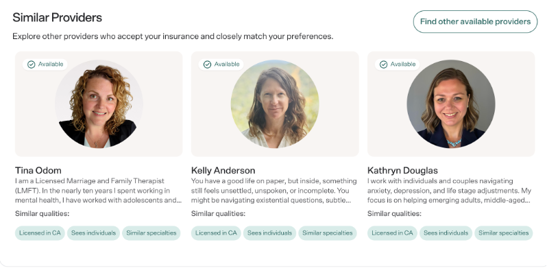P.S. If you find that your first therapist isn’t the right match, we make it easy to browse other providers and book appointments in your patient portal.